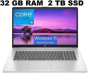 HP 17 Laptop, 17.3" FHD (1920 x 1080) Display, Intel Core i5-1335U 10 cores Processor, Intel Iris Xe Graphics, 32GB DDR4  2TB PCIe SSD, Backlit Keyboard, Windows 11 Pro ,Office 2024 License