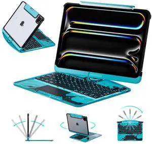 for iPad Pro 13 Inch Case (M5/M4), Pro 12.9(6th/5th /4th/3rd Gen) Cover with Keyboard, 7 Color Backlit, Multi-Touch Trackpad, Magic 360 Rotarable & Swivel Bluetooth Keyboard, Auto Sleep/Wake, Black