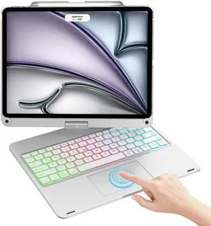 Keyboard Case for iPad Pro 12.9 inch 6th/5th/4th/3rd Gen, 7 Modes Rainbow Backlight, Wireless Multi-Touch Trackpad, 360Swivel Rotatable Protective Case with Pencil Holder, Large Battery, Thin & Light