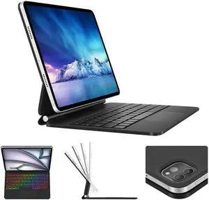 Keyboard Case for iPad Air 13 (M3 2025, M2 2024) and iPad Pro 12.9 (6th/5th/4th/3rd Gen), Wireless Magnetic Keyboard Case with Multi-Touch Trackpad, Floating Cantilever Stand, Rainbow Backlit