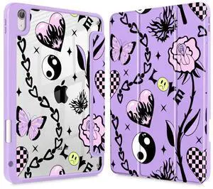 Lepeoac Case for iPad Air 11'' (M3 2025/M2 2024) 6th Gen/iPad Air 10.9'' 2022 2020 Air 5th /4th Gen, Buit in Pencil Holder with Clear Transparent Back Cover Auto Wake/Sleep, Y2K Emo Girl SD166