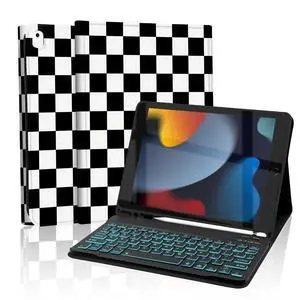 Mewealth Keyboard Case for iPad 9th / 8th / 7th Generation 10.2 Inch with Pencil Holder, Backlights LED Keyboard Cover for iPad Pro 10.5" / iPad Air 3rd, Checkered Plaid White-Black