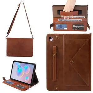 Handbag Case for iPad 10.2" (2019-2021) & iPad Pro/Air 10.5", Techcircle Folio Stand iPad Crossbody Wallet Case with Pencil Holder & Envelope Pocket, Hand Strap+Shoulder Strap Protective Cover, Coffee