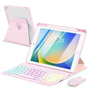 EAMPANG Case with Keyboard Mouse for iPad 9th 8th 7th Generation 10.2 inch,7 Rainbow Backlit Detachable Wireless Keypad Rotatable Magnetic Cover with Pencil Holder for iPad Air 3rd Gen/Pro 10.5 Pink