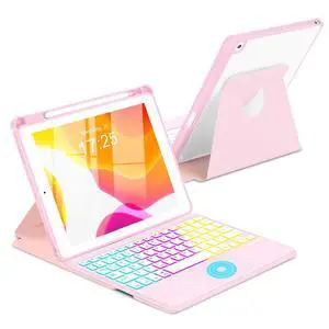 MePadKey Touchpad Keyboard Case for iPad 9th /8th/7th Generation 10.2 inch, 360 Degree Rotation Cover with Rainbow Backlit Wireless Detachable Keypad for iPad Pro 10.5/Air 3rd Gen (Pink)