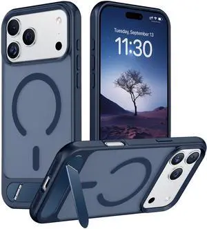 Designed for iPhone 17 Pro Max Case, [Built-in Invisible Kickstand][Compatible with MagSafe][Military Grade Shockproof] Slim Translucent Matte Phone Case 6.9 inch (Blue)