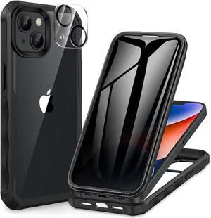 Privacy for iPhone 14 Case/iPhone 13 Case Full Body Phone Case with Built-in 9H Tempered Glass Privacy Screen Protector and Camera Lens Protector Shockproof Bumper Clear Cover - Black