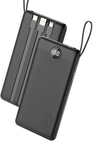 Portable Charger with Built in Cables, Power Bank with Cords Wires, Slim 10000mAh Travel Battery Pack 6 Outputs 3 Inputs 3A Fast Charging for Samsung Google Pixel LG Moto iPhone iPad