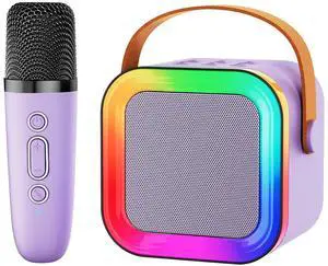 Mini Karaoke Machine Speaker for Kids Adults,Portable Bluetooth with 1-2 Wireless Microphones,Christmas Birthday Gifts Toys Girls Boys Ages 4, 5, 6,7, 8,9,10,11,12+ Years Old Toddler (Purple - 1 Mic)