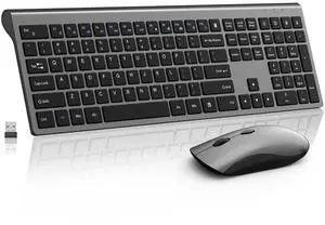 Wireless Mouse and Keyboard Combo, Silent Full-Size Computer Keyboard with Calculator Button, 2400 DPI Mouse, Quiet Click, Slim Cordless USB Set for Laptop PC Windows Mac - Space Grey