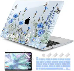 Teryeefi for MacBook Air 13.6 inch Case M5 A3449/M4 A3240/M3 A3113/M2 A2681 (Released 2026 to 2022), Hard Shell + Keyboard Cover+ Screen Protector+Dustp Lug + Type-C Adapter, Cute Flowers A009