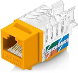 SATMAXIMUM CAT6A Keystone Ethernet Wall Jack Punch Down UTP 45-Degree (Easier Termination Than 90-Degree), RJ45 Slim Profile Speed Termination 45 Angled (10, Yellow)