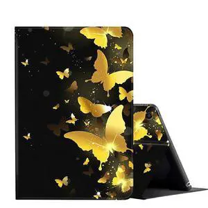 for Fire HD 10 Case (9th/7th Generation,2019/2017 Tablet) Multi-Angle Viewing Anti Slide Folio Stand Smart Cover Cases for All New Kindle Fire HD 10 9th/7th Gen 10.1"- Gold Butterfly
