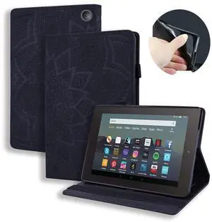 Dteck Case for Kindle Fire HD 10 Case 9th/7th/5th Generation 10.1" (2019/2017/2015),Premium Embossed Leather Folio Stand Protective Cover with Card Holders Elastic Band for Fire HD 10.1" Tablet,Black