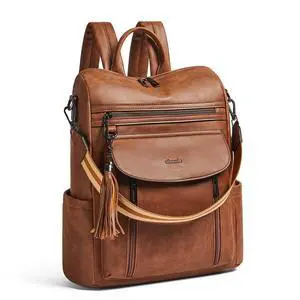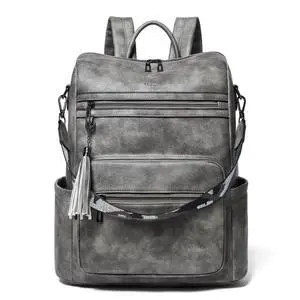 Shrrie 15.6 inch Laptop Backpack for Women,Large Leather Purse,Travel Backpacks Carry on,Water Resistant Casual Laptop Backpacks,College Backpack,Work Backpack for Women,Two-toned Deep Gray