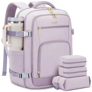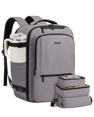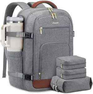 LOVEVOOK Carry On Backpack for Women Flight Approved, Travel Backpack for Men, Personal Item Travel Bag with Large Cup Holder & Padded Laptop Compartment, Business Daypack with 2 Cubes, 18 Inch