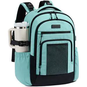 Laptop Backpack for Women, High School Bookbag for Girls with USB Port Charging, 15.6 Inch Water Resistant Computer Bag for Work, Travel College Back Pack Purse Gifts for Student Teacher, Light Green