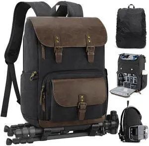 RAINSMORE Camera Bag Professional for DSLR/SLR Mirrorless Waterproof 15.6 Inch Laptop Photography Backpack with Side Access Rain Cover Tripod Holder Large Anti-Theft Camera Backpacks for Photographers