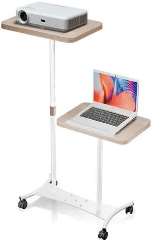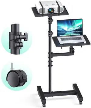 Facilife 2 Shelves Projector Stand Tripod, Height Adjustable Max 64", Mobile Laptop Cart on Wheels Projector Tripod Stand, Overbed Table with Wheels, Rolling Laptop Floor Stand for Couch