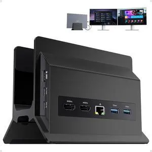 PULWTOP USB C Laptop Docking Station Dual Monitor, 11 in 1 Vertical Dock with 2 HDMI 4K, 3 USB A/C 10Gbps, 2USB-A 5Gbps, USB A 2.0, Ethernet, Docking Station Stand for Type-C Laptops - Black