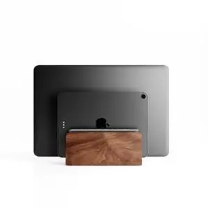Raico Verical Laptop Stand MacBook Walnut Wood Dual Laptop Vertical Setup Holder Stand (Walnut Wood, Dual Slot ^^ Adjustable)