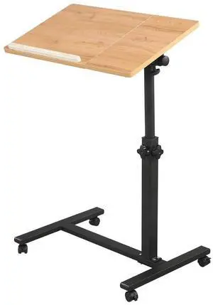 TigerDad Overbed Bedside Desk Mobile Rolling Laptop Stand Tilting Overbed Table with Wheels Height Adjustable Tray Table for Laptop Bed Sofa Side Table (Wood)