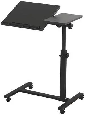 TigerDad Overbed Bedside Desk Mobile Rolling Laptop Stand Tilting Overbed Table with Wheels Height Adjustable Tray Table for Laptop Bed Sofa Side Table (Black)