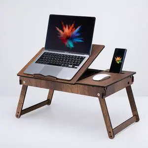 Vigo Wood Foldable Lap Desk for Laptop Tray for Bed, Adjustable Laptop Stand, Notebook Folding Table with Storage, Bed Desk for Lap top and Writing, Portable Study Table, Walnut Lapdesk
