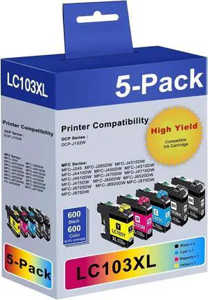 LC103XL LC103 Ink Cartridges High Yield Replacement for Brother LC103 Ink Cartridges LC101 Work with MFC-J870DW MFC-J6920DW MFC-J6520DW MFC-J450DW MFC-J470DW (2Black 1Cyan 1Magenta 1Yellow, 5 Pack)
