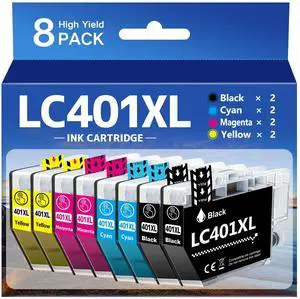INSCMYK LC401XL Ink Cartridges Compatible for Brother LC401XL Ink Cartridges High Yield LC401 XL LC401 for Brother MFC-J1010DW MFC-J1012DW MFC-J1170DW(2 Black,2 Cyan,2 Magenta,2 Yellow)