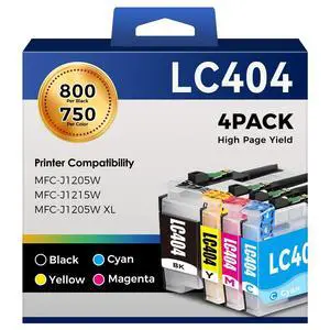 MFC-J1205W LC404 LC404XL Ink Cartridges Compatible Replacement for Brother Printer 404XL LC 404 for MFC-J1205W MFC-J1215W MFC J1205W J1215W - 4 Pack Black Cyan Magenta Yellow