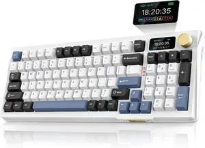 RedThunder K95 Wireless Mechanical Keyboard, TFT Screen & Knob, Tri-Mode BT5.0/2.4GHz/USB-C Hot Swappable Custom, Pre-lubed Linear Switches, Gasket Structure, RGB Gaming Keyboard, Snowy White-Blue