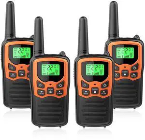 Walkie Talkies with 22 FRS Channels Walkie Talkies for Adults with LED Flashlight VOX Scan LCD Display, Long Range Family Radios for Hiking Camping Trip (Orange, 4 Pack)