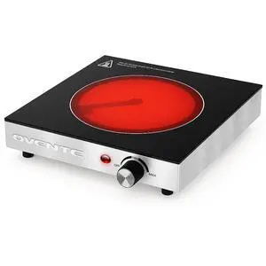 Infrared Ceramic Single Burner, 1200W Electric Countertop Hot Plate with Black Crystalline Glass, Portable Stainless Steel Cooktop for Home, Office, or Dorm Use, Black BGI301GB