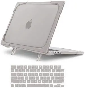 MOSISO Compatible with MacBook Air 15 inch Case 2025 2024 2023 M4 A3241 M3 A3114 M2 A2941, Honeycomb Shockproof Heavy Duty TPU Bumper Plastic Hard Case with Fold Kickstand&Keyboard Cover,Lavender Gray