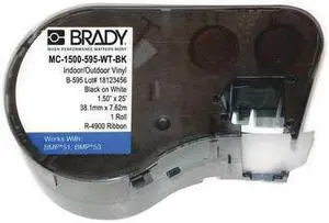 BRADY MC-1500-595-WT-BK Label Cartridge, Black on White, Labels/Roll: Continuous