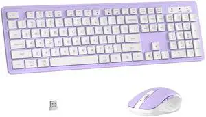 Wireless Keyboard and Mouse Combo, Full-Size 104-Key Office Keyboard with 15 Function Keys, Numeric Keypad, Single USB Receiver, Compatible with PC and Laptop(Purple White)