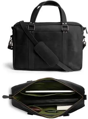 Leather briefcase 18 Inch Laptop Messenger Bags for Men and Women Best Office briefcase Satchel Bag (Black)