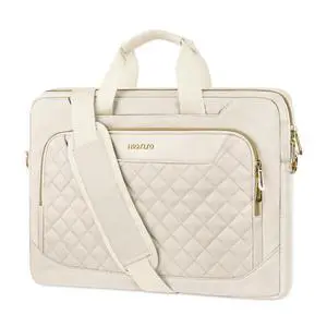 MOSISO Laptop Shoulder Bag, 15.6 inch Computer Bags Compatible with MacBook Pro 16 M4 M3 M2 M1/Air 15 M4 M3 M2, 15-15.6 inch,HP,Dell,Acer,Notebook, Messenger Bag with Front Square Quilted Pocket,Beige