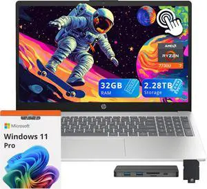 HP 15.6" FHD IPS Touchscreen Laptop, AMD Ryzen 7 7730U, 32GB RAM, 2.28TB Storage (2TB SSD+288GB Docking Station Set), AMD Radeon Graphics, Numeric Keypad, Windows 11 Pro, Silver