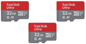 SanDisk Ultra 32GB microSDHC UHS-I Card with Adapter - 98MB/s U1 A1 - SDSQUAR-032G-GN6MA, 3 Pack(32GB)