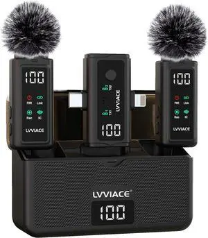 Mini Microphone,3 in 1 Wireless Lavalier Microphones for iPhone/iPad/Android/Camera(Lightning/USB/3.5 mm Jack),2 LED Display Bluetooth Microphone Mute/Noise for Video Recording Vlog,Youtube, Tiktok