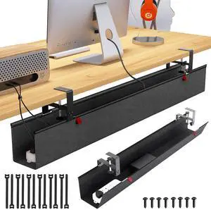 No-Screw Under Desk Cable Management Tray - Self-Adhesive Installation, Cord Management, Cable Tray, Under Desk Wire Organizer - Black Set of 2