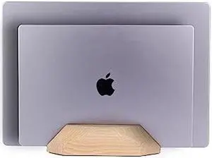 MOYUART Dual Laptop Holder Vertical Laptop Stand, 2 Slots MacBook Stand Wood,Wooden Laptop Stand,Vertical Laptop Holder for Desk, Widen Dock Fits All MacBook/Surface pro(Beech Wood)