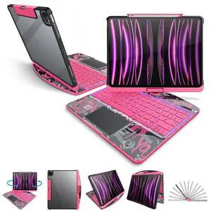 molosicars Case with Keyboard for iPad Pro 11-inch 2018-2022 (1st/2nd/3rd/4th Gen), case with Pencil Holder, 7-Color Backlit Wireless Keyboard, 360 Rotating, Multi-Touch Trackpad Transparent Black