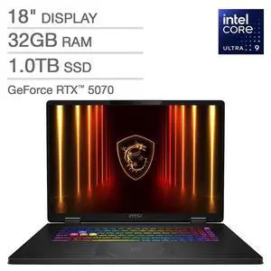 MSI Crosshair 18 HX AI Gaming Laptop, Intel Ultra 9-275HX, 32 GB DDR5 RAM, 2 TB PCIe SSD, 18" QHD+ (2560x1600) 240Hz Display, Nvidia G-Force RTX 5070, 24-Zone RGB Keyboard, W11 Home, Gray