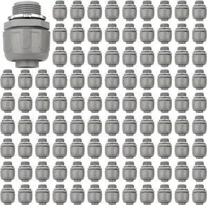 Conduit Connectors, 3/4 Inch Liquid Tight Connector NPT Non-Metallic for PVC Electrical Flexible Conduit Fittings, 180 Degree Straight, UL Listed for Home Outdoor Tubes Tools, Grey (100-Pack)