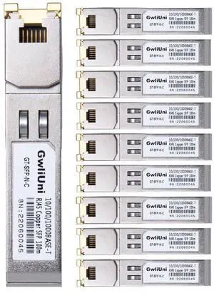 10Pcs 1.25Gbps RJ45 Copper SFP, 10/100/1000Base-T transceiver Module 100m for Switch, Router, Firewall, Network Card, Media Converter etc