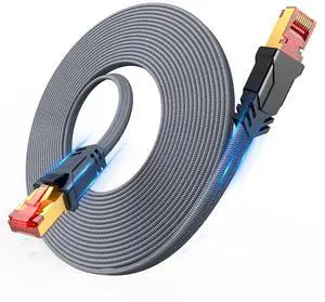 Snowkids Cat 8 Ethernet Cable 75 FT, Flat High Speed 75 FT Ethernet Cable, 40Gbps, 2000Mhz Braided High Duty Long Ethernet Cable, Gold Plated RJ45 Connector for Modem/Router/PS3/4/5/Gaming/PC