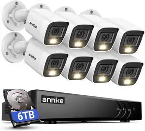 ANNKE 2MP Security Camera System, 16CH 3K Lite DVR Recorder with AI Motion Detection, 8X 1080P (1920×1080) Add-on Wired White Cams with Smart Color Night Vision, IP67, 3.6mm Lens, 6TB Hard Drive